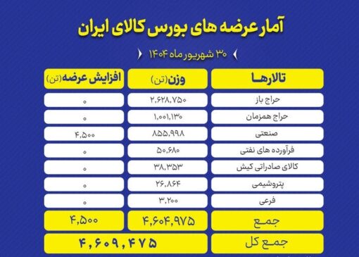 عرضه بیش از ۴.۶ میلیون تن کالا در بورس