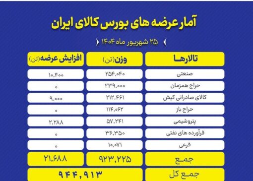 تالارهای بورس کالای ایران میزبان عرضه ۹۴۵ هزار تن انواع محصول
